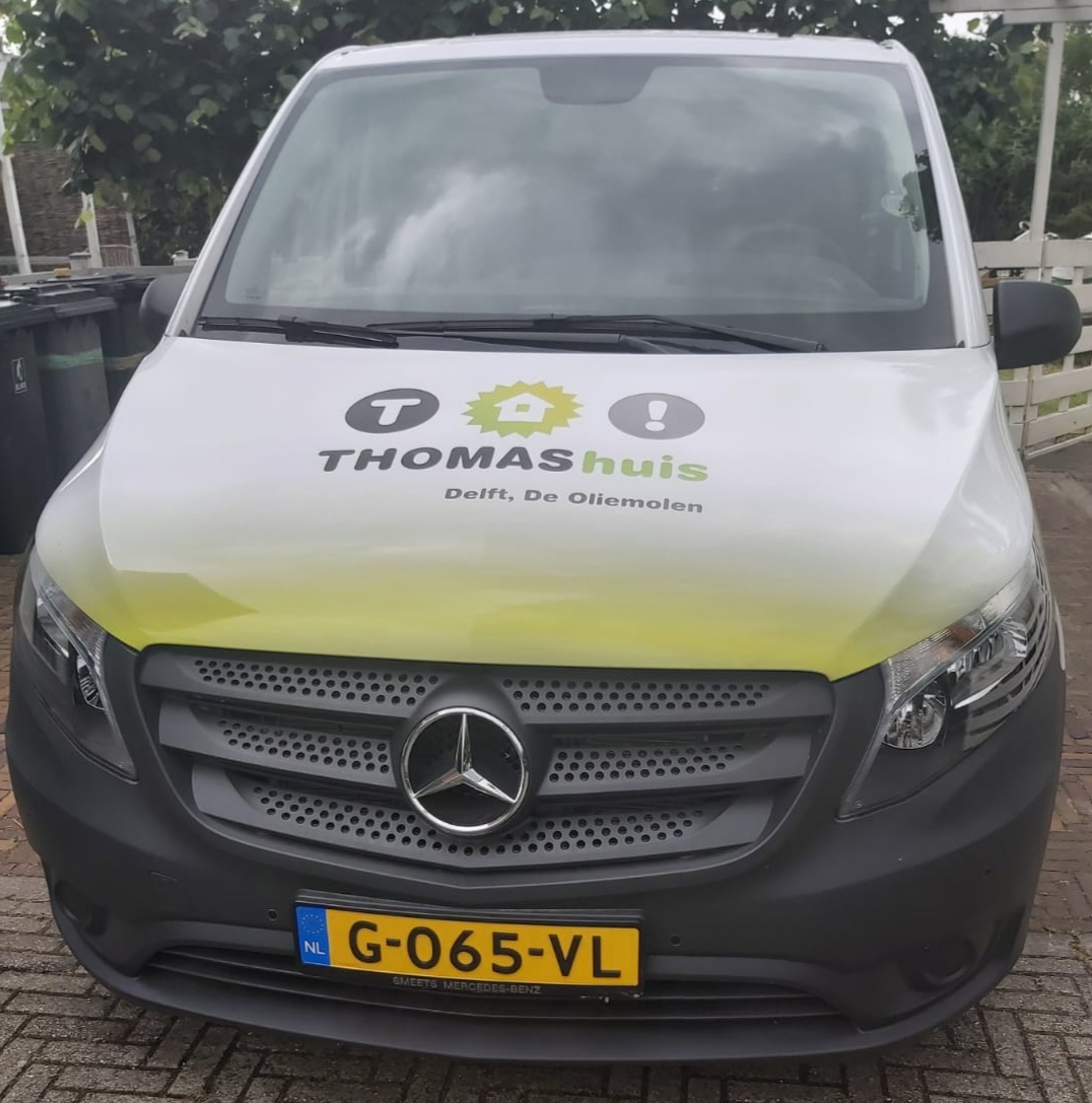 Deze mooie bus is recent in bedrijf genomen door het Thomashuis de Oliemolen in Delft, een liefdevol thuis voor mensen met een verstandelijke beperking.